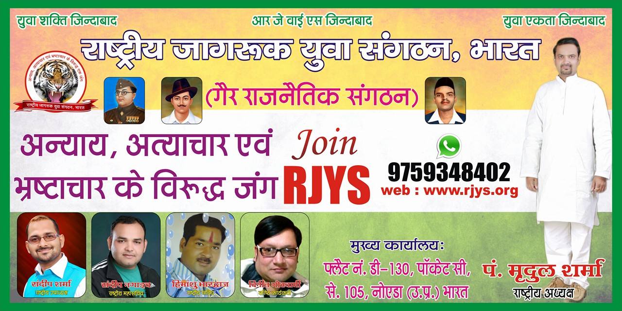 राष्ट्रीय जागरूक युवा संगठन भारत की स्थापना योगिराज भगवान श्री कृष्ण की जन्म भूमि मथुरा में वर्ष 2004 में संस्थापक एवं राष्ट्रीय अध्यक्ष पंडित मृदुल शर्मा जी ने की।