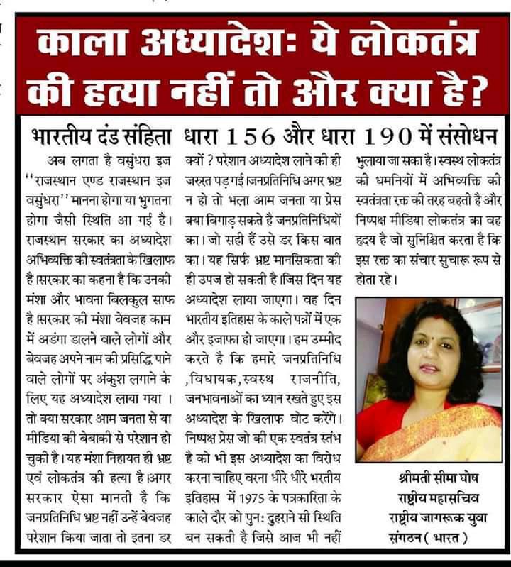 समाचार पत्र , पत्रिका न्यूज चैनल का संपादन एवम प्रकाशन करना । आर टी आई कार्यकर्ता तैयार करना, देश भर में निष्ठावान ईमानदार , पत्रकार नियुक्त कर राष्ट्र सेवा का अवसर प्रदान करना। देश भर में युवाओं को संगठित कर समाज सेवा और देश सेवा से जोड़ना। भ्रष्ट अधिकारियों के विरुद्ध कार्यवाही करना , अपराधियों को चिन्हित कर पकड़वाना । प्रशासन के सहयोग से गरीब असहाय को न्याय दिलाना।
